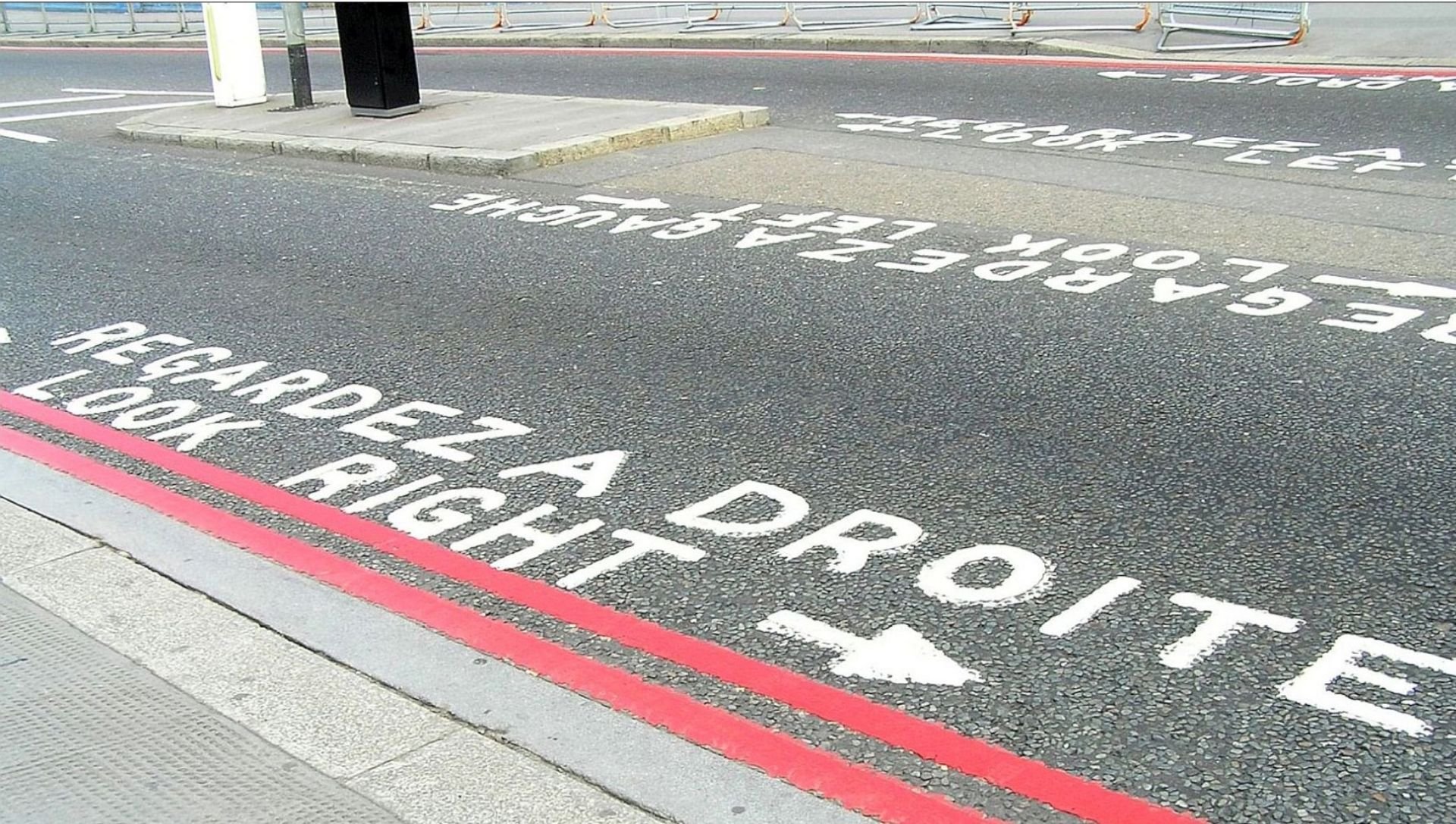 Ve Velké Britanii se jezdí vlevo. To může přinést návštěvníkovi ze země, kde je pravostranný provoz, nepříjemný zážitek. Zejména na přechodu přes ulici. Vozidla přijíždějí z opačné strany než je zvyklý. Hezky to vyřešili v Londýně na turisticky frekventovaném přechodu přes nájezd z levého břehu Temže na Tower Bridge - na vozovku nechali namalovat nápis "Koukej vpravo / vlevo".