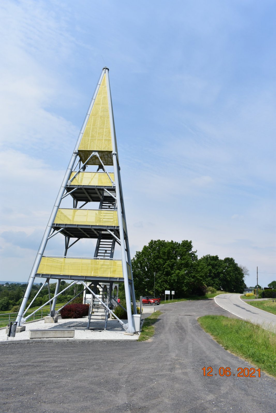 Ne náhodou rozhledna v rámci projektu EU Překračujeme hranice Cz/Pl byla postavena v obci Pogrzebień. Obec je vysoko poležená nad údolím řeky Odry a je zde videlnost na Beskydy a Jeseníky.