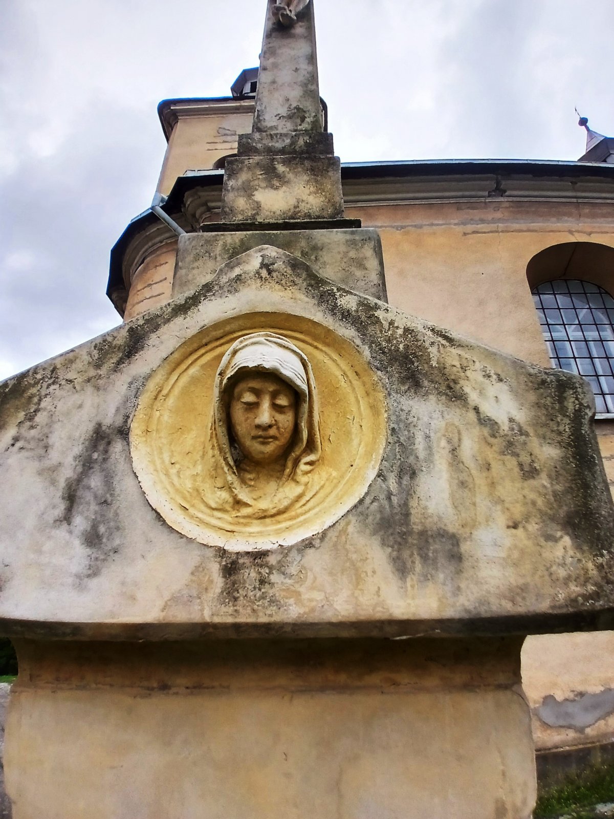 Loučka - Kostel sv. Karla Boromejského a kamenný kříž