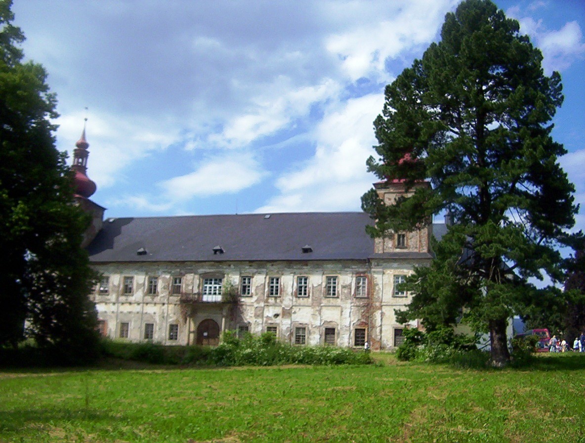 Loučná nad Desnou-Domeček,bývalá fara a zámek z cesty od hrobky rodiny Kleinů-Foto:Ulrych Mir.