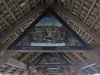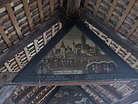 Na závěr snad ještě pár slov o unikátním souboru mostních obrazů. Ty měly tvar trojúhelníku o základně 150 až 181 cm a výšce 85 až 95 cm. Každý panel tvořila smrková prkna (3-5 ks), výjimkou byla lípa nebo javor. Celý cyklus obrazů vznikl v době tzv. protireformace. Uvádí se, že obrazy vytvořil pozdně renesanční malíř Hans H. Wägmann se svou dílnou, kterou tvořili jeho čtyři synové.