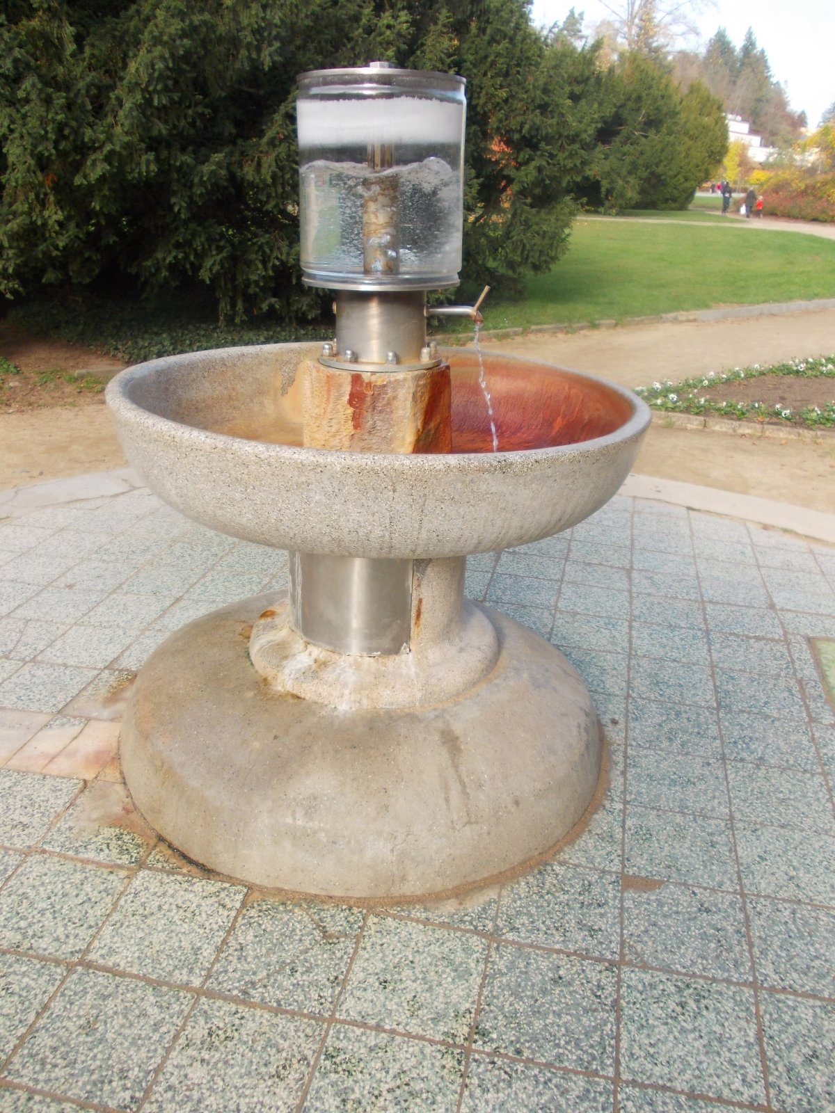 Prameň vyviera v kašne - miske na podstavci. V strede bazéna je na podstavci efektne bublajúca voda v presklenenom valcovom zásobníku. Z tohta preskleneného zásobníka si jedným vývodom môže návštevník kúpeľov ,,načapovať,, vodu do kúpeľného krčiažteka alebo do prinesených PET fľaší.