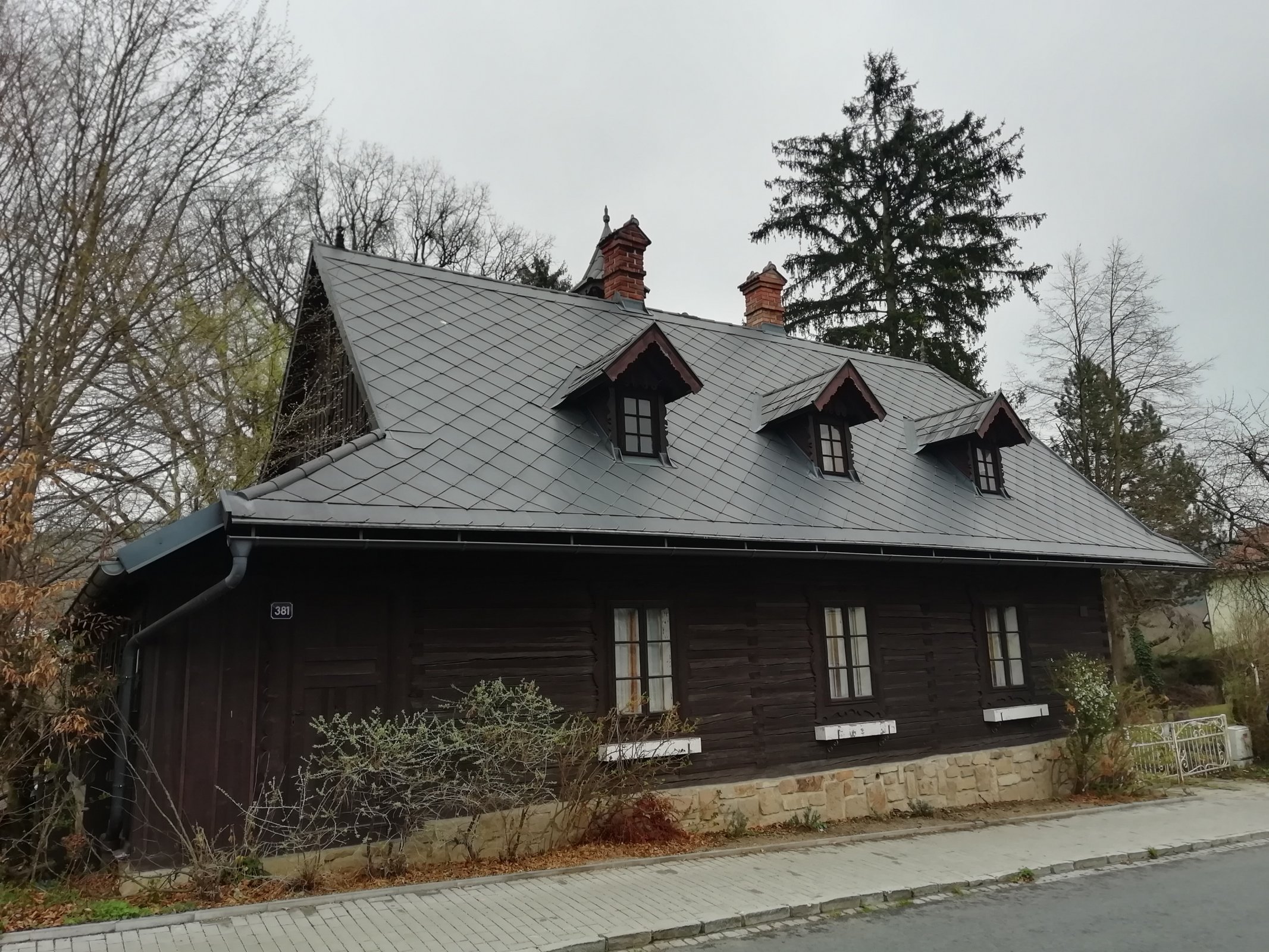 malé zdobené okienka na bočnej stene domku