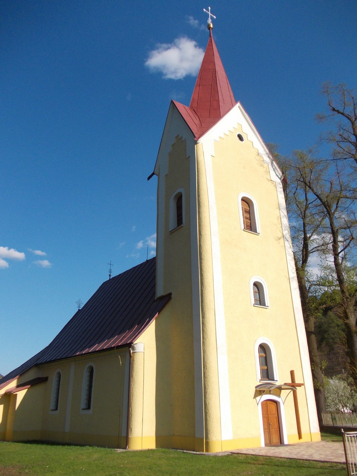 Na území obce stál ale malý kostolík už oveľa skôr, malo ísť o romanský kostolík, ktorý si prví obyvatelia postavili. Dnešný kostol bol postavený začiatkom 15. storočia v gotickom slohu. Kostol stojí na mieste spomínaného kostolíka, jeho časť bola aj stavebne začlenená v jeho pôdoryse s prvkami staršej románskej stavby. K jeho prestavbe došlo v roku 1612, v roku 1792 ho ďalšou úpravou zbarokizovali.