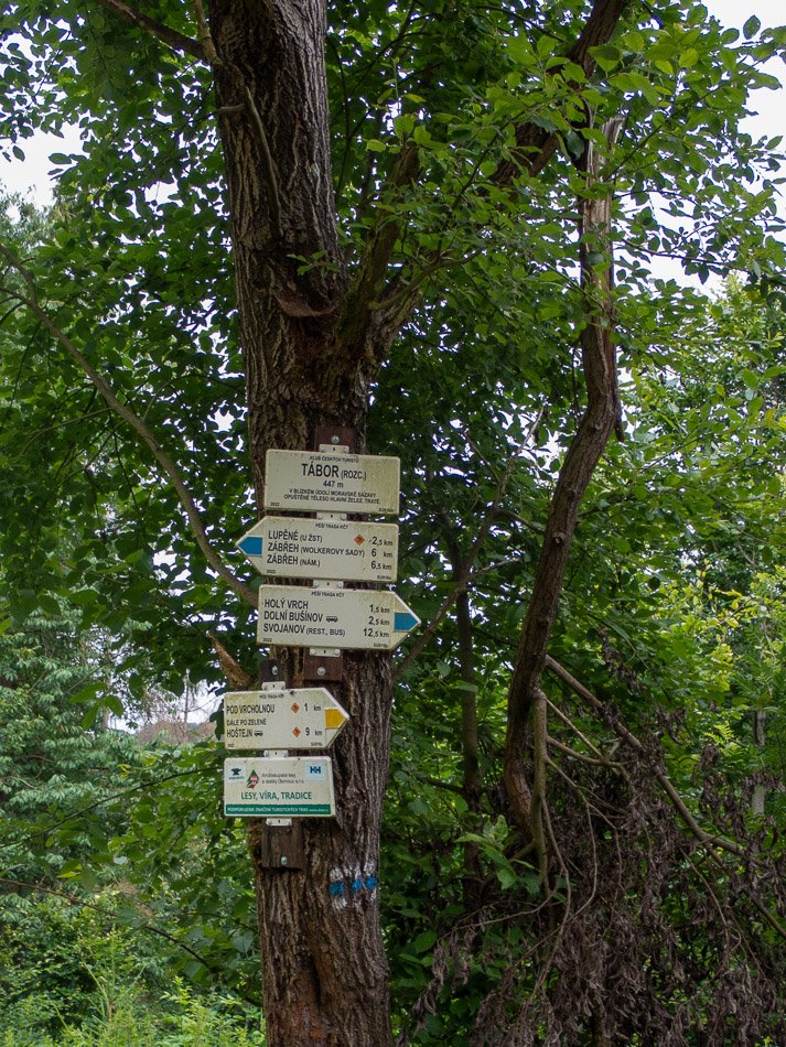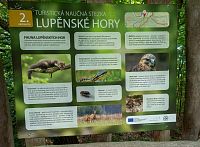 Aby si toho nejen místní řádně užili, je přístupová trasa pod vrchol opatřena i naučnou stezkou, pro poučení, co že se v okolí Lupěného odehrává. Samotná trasa NS má délku něco kolem 1 km. Víceméně neplánovaně jsem na ni narazil při značení modré TZ od Dolního Bušínova. Čili vlastně z druhé strany. Správně bych popis měl začít až u krajního bodu stezky, ale přeci jen začnu o něco dříve u rozcestí s názvem Tábor (447 m), tudy prochází zmíněná modrá TZ a odbočkou je krátká žlutá TZ k zelené značce k Hoštejnu. To nás ale tolik nemusí zajímat. Od Tábora (ale i před tím) je trasa vedena víceméně ve vrstevnicích po úbočích kopců vysočiny.