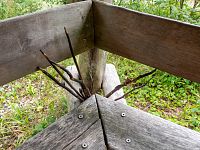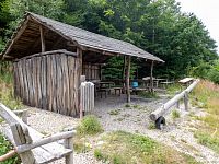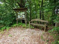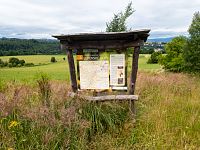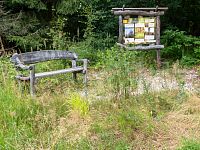 Pak už je kousek k dřevěnému altánu, spíše přístřešku, které je konečným bodem naučné stezky. V pořadí jde o tabuli 4, z čehož plyne, že jde vskutku o úspornou stezku. Zastavení stezky se věnuje částečně historii Lupěného a v druhé části i geologickými poměry v okolí.