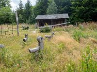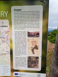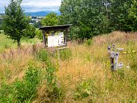 Poslední tedy vlastně první zastavení je na okraji lesa a je ze všech zastávek nejrozsáhlejší. Kromě dalšího přístřešku tu jsou i nějaké herní prvky, houpačky, prolézačky apod. Vše vyvedené ve dřevě nebo jeho kombinaci. Tato tabule je opět trošku o historii, ale představuje i okolí nejen k Nemili, ale i k nedalekému Zábřehu, trošku o historii kraje apod. navíc upozorňuje i na poměrně daleký výhled k severu, tedy k Hrubému Jeseníku.