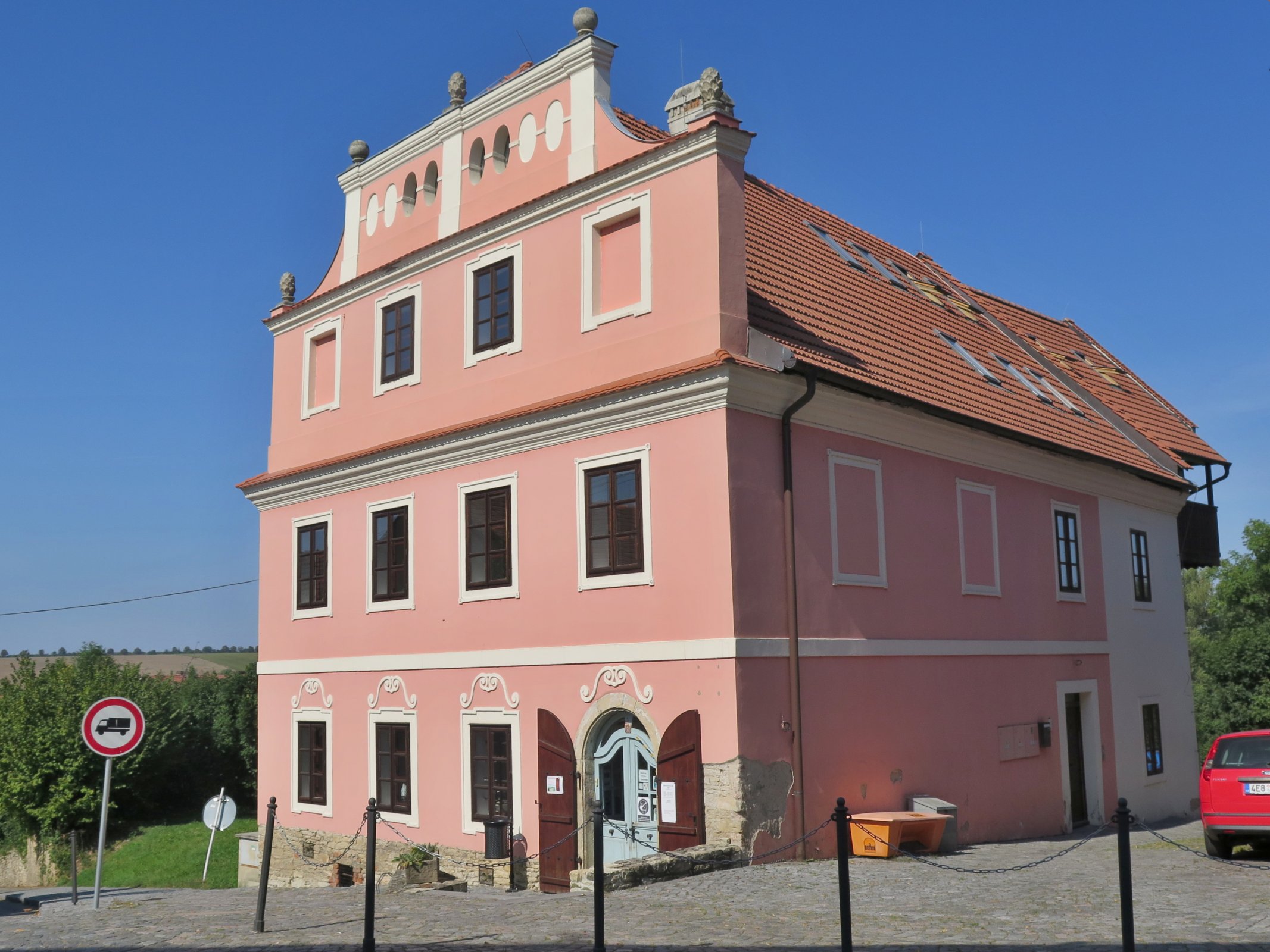 Třípodlažní měšťanský dům z opukového zdiva je výjimečný i tím, že se nenachází na zdejším náměstí, ale stojí samostatně v blízkosti děkanského kostela. Průčelí je čtyřosé a rozdělené dvěma římsami, z nichž jedna dělí atiku na dvě pole – v dolním jsou dvě středová okna a dvě slepá okna postranní, vyšší pole je pak nejvýraznějším zdobným prvkem celé stavby (vidět zde mj. můžeme trojici pilastrů s bohatě členěnými hlavicemi). Další zdobné prvky (voluty) jsou nad přízemními okny a kupeckým vchodem.