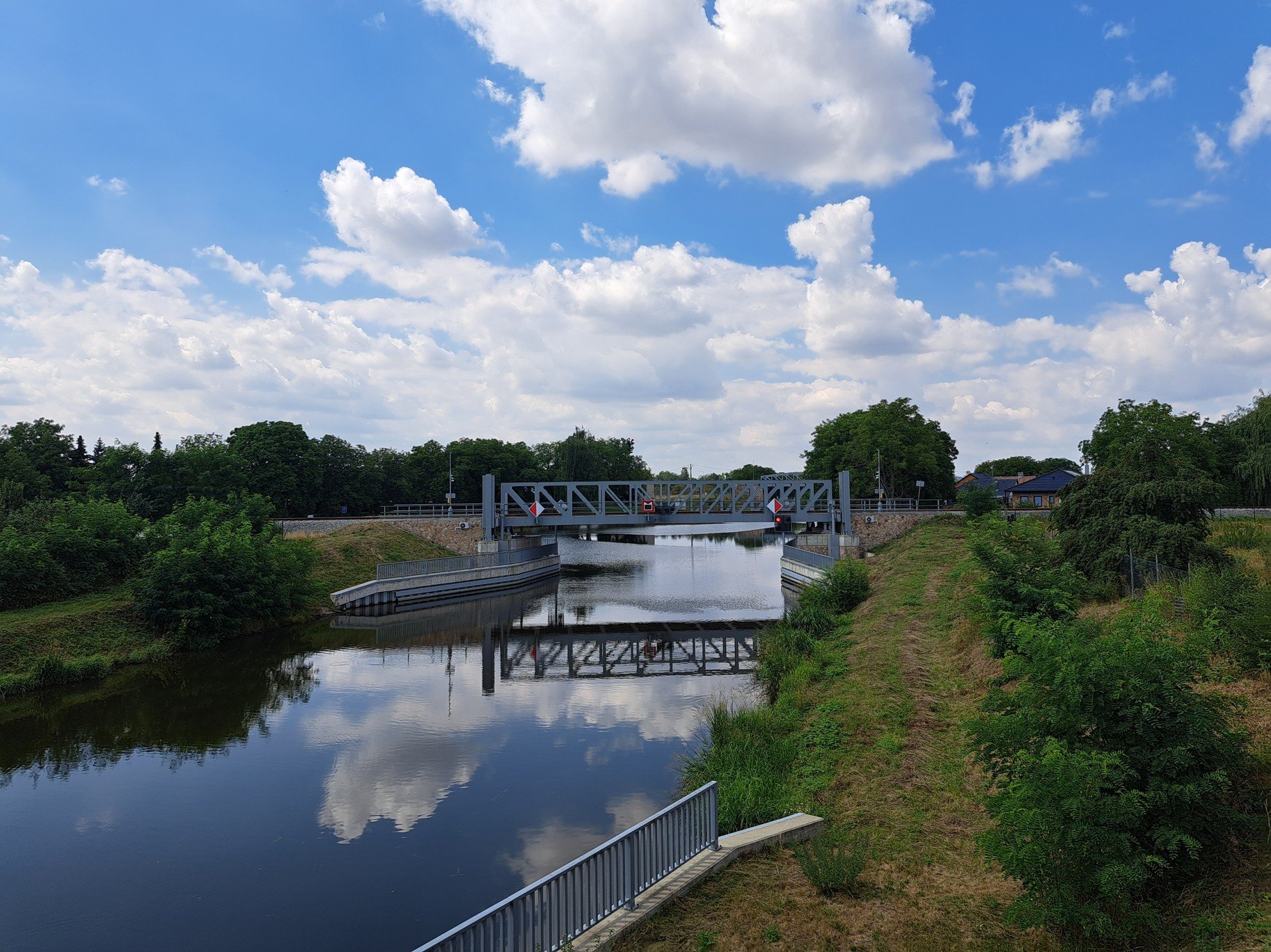 Lužec nad Vltavou a silniční zdvihací most přes plavební kanál