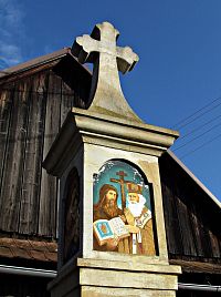 Překvapila už spodní „modernější“ část obce, rozkládající se u hlavního silničního tahu, odkud jsem procházel k tunelu pod železniční tratí. Tady mne zaujal Pomník válečným obětem v podobě kamenného kříže s barevnými obrázky světců v nikách. Za mostkem přes Senici pak silnici zleva lemovalo několik velmi půvabných dřevěných stavení (jedno i se zvoničkou) a nad nimi se ze svahu vypínalo trio starobylých valašských sklípků s líbivými roubenými nádstavbami. Při jejich focení jsem se zakecal s místním dědou. Slovo dalo slovo a já s ním pak odbočil k jeho bydlišti, nad kterým mi ukázal nejstarší luženskou dřevěnou chalupu.