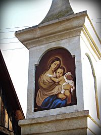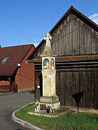 Na místní Pomník obětem 1. a 2.světové války narazíme v dolní části obce jen kousek od hlavní silnice. Stojí u staré dřevěné stodoly na křižovatce cest před mostkem přes Senici, naproti „Hospody u Šajenů.“ Má podobu štíhlého kamenného hranolu nahoře s mohutným krucifixem se zaoblenými rameny. Úplně dole u země je na soklu umístěna černá mramorová deska s 19 jmény padlých z obou světových válek, jež jsou vyvedeny žlutým písmem. Nad deskou je vyryt nápis „V paměť obětem světové války 1914 – 1918.“ Na hranolu se nachází reliéf jednoduché kartuše s letopočtem „1939-1945.“ Horní část pomníku má podobu čtyřhranné výklenové kapličky, kde jsou v mělkých nikách umístěny pěkně vymalované obrázky svatého Cyrila s Metodějem, sv.Jana Nepomuckého, Panny Marie s malým Ježíškem a sv.Antonína.