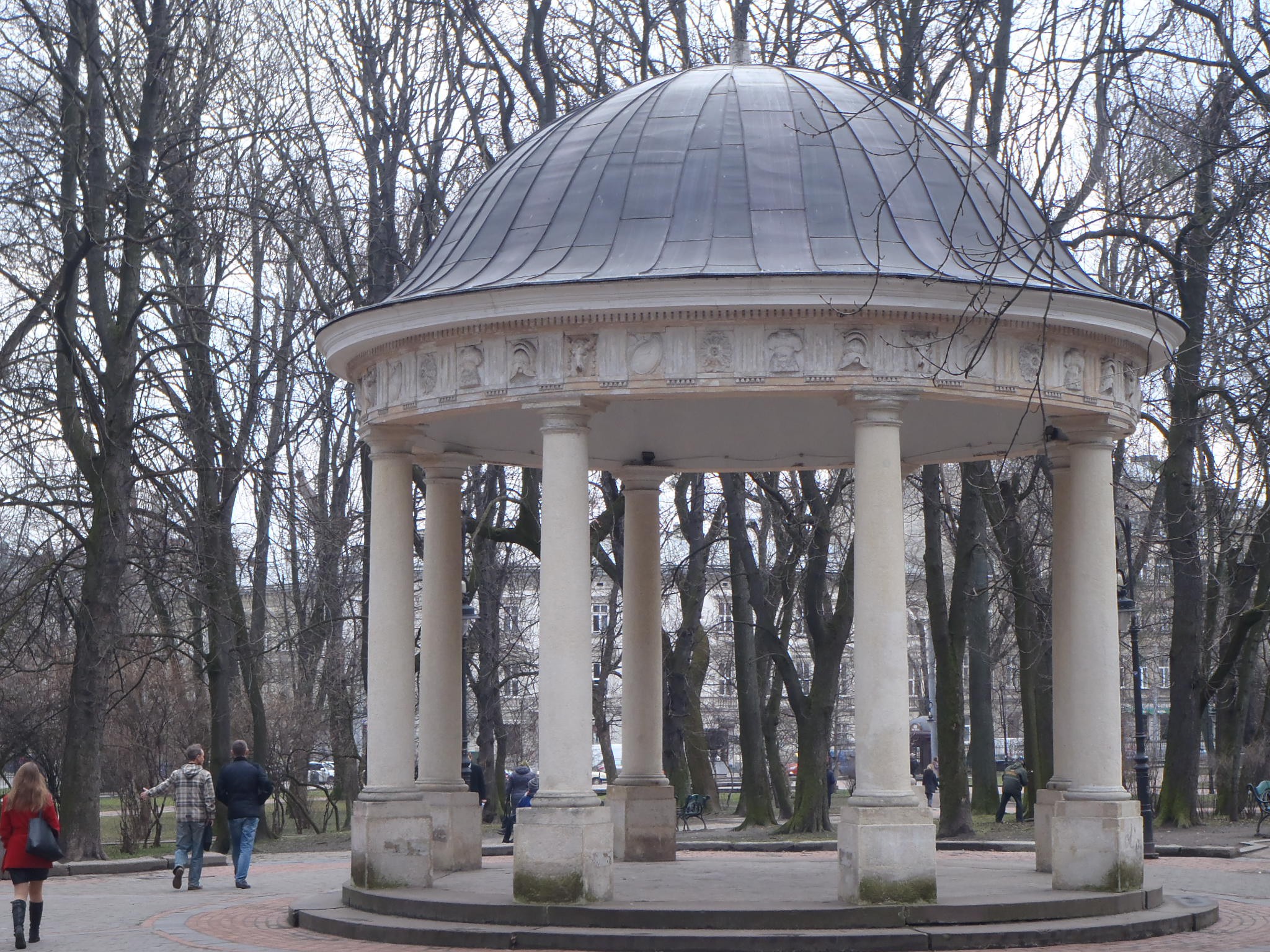 Park, který nese jméno ukrajinského básníka Ivana Franka, je vybudovaný naproti Lvovské univerzitě. V březnu stromy ještě nebyly rozkvetlé.