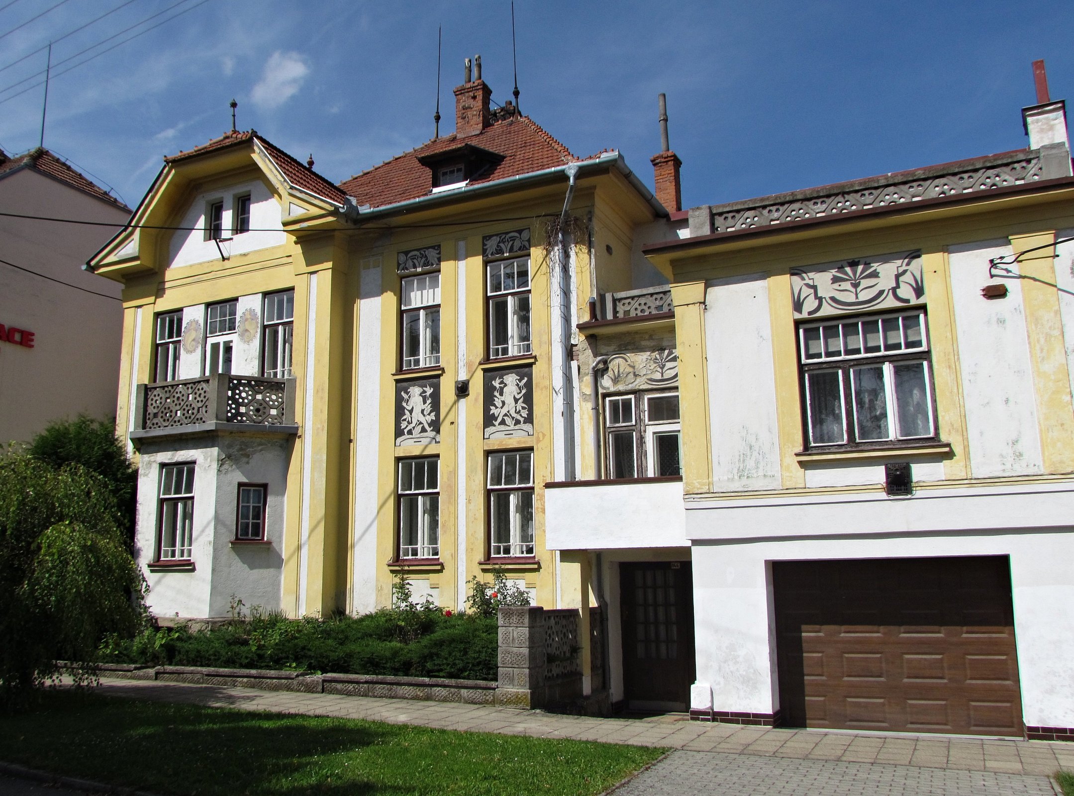 Největší dominantou náměstí je totiž ohromná socha lva, která na příchozí shlíží z vrcholu Památníku padlým I.světové války. Pokud přijdeme blíž, vidíme, že podstavec je ozdoben také sochou zahalené truchlící ženy a jmény padlých hrdinů. Autorem pompézního památníku se v roce 1924 stal místní rodák, sochař Karel Novák. (Cedulka se jmény obětí té mnohem strašnější války následující přibyla později.)