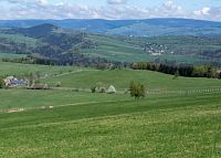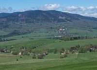 Pokud trošku postoupíme od lesa, objevíme i Ramzovské sedlo (a větrníky u Ostružné) a pak se zvedá na Šerák hřeben Hrubého Jeseníku.