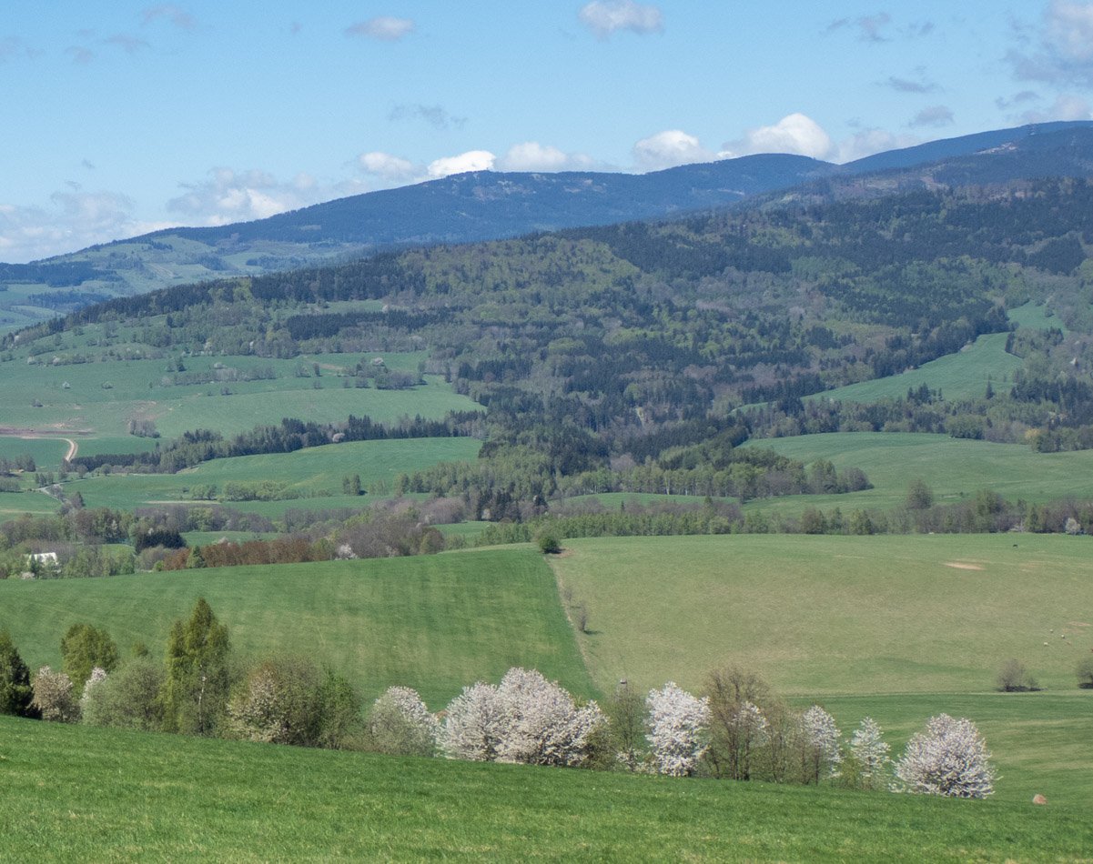Dominance Srázné (Sviní) hory, s Vojtíškove, níže Křivá Voda autor: Bobkart