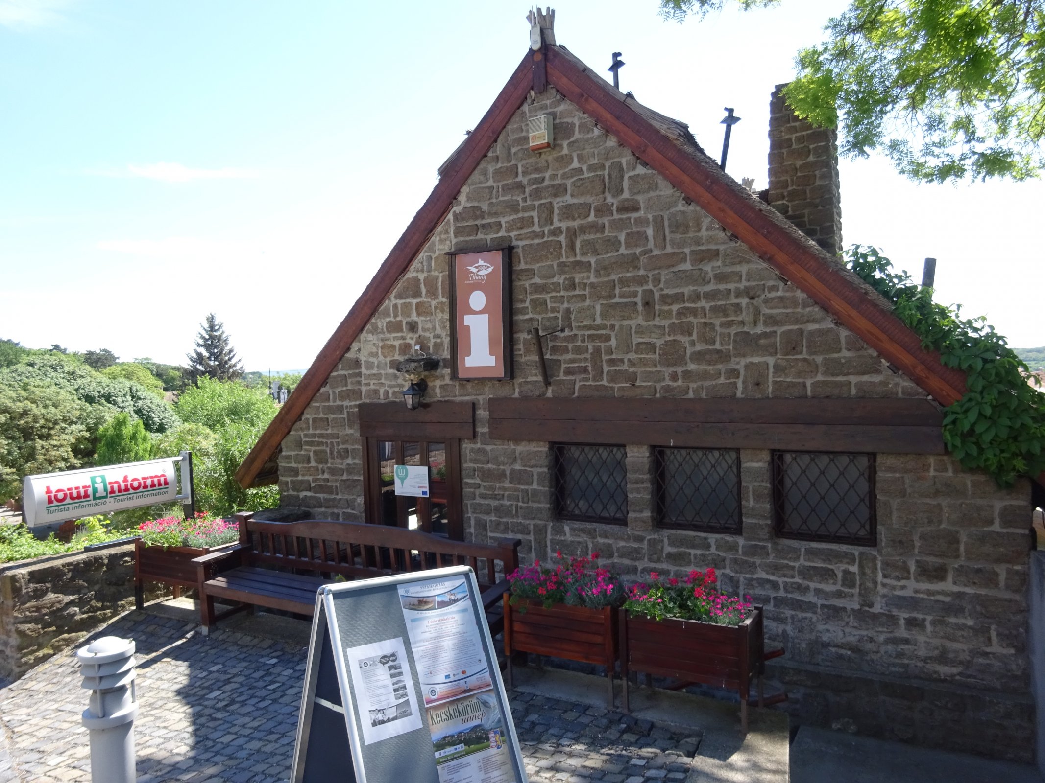 V Tihány jsem navštívila dvě Infocentra. Jedno je přímo v benediktinském klášteře. Druhé Infocentrum je v malebném kamenném domečku se slaměnou střechou přímo z kopce dolů od kláštera. Kromě informačních letáků a pohledů je i zde obchůdek s drobnými upomínkovými předměty. Turistické vizitky jsem v celém Maďarsku nesehnala, ale měli zde alespoň razítko.