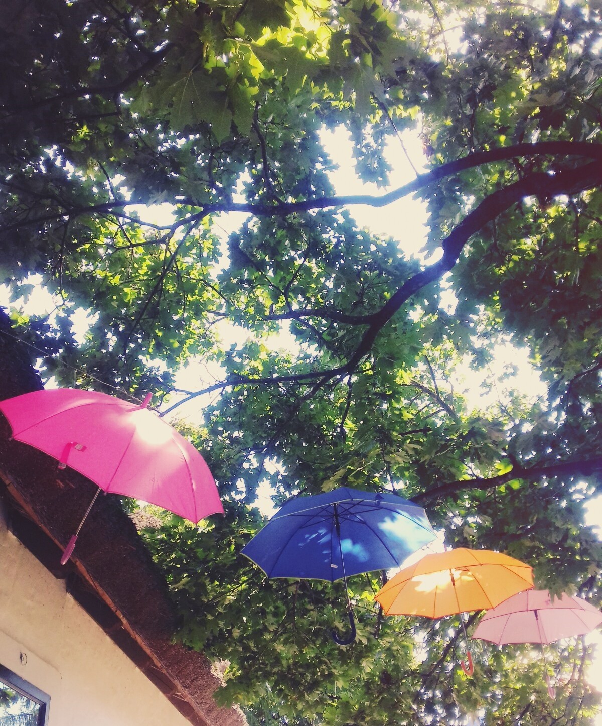dáždniky rozvešané pri reštaurácii  autor: ivetka