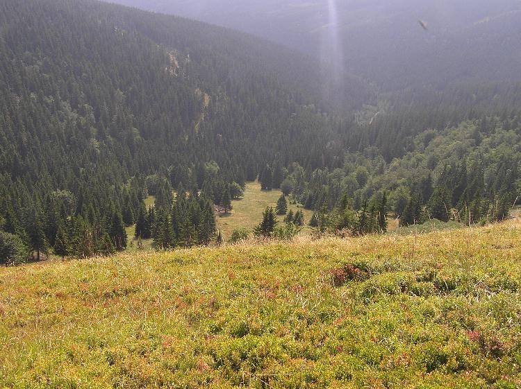 pohled na Malou kotlinu z turistické trasy nad Jelení studánkou (září 2006)