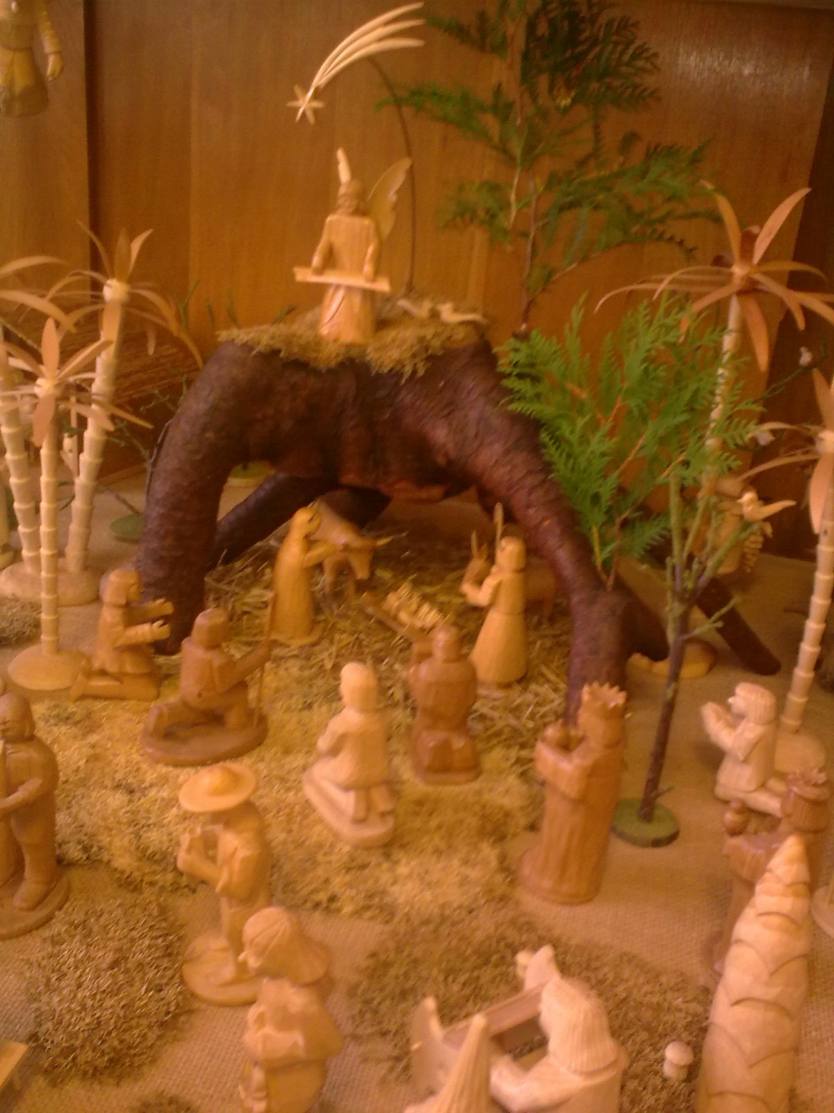 Uvidíte zde vyřezávaný betlém, který se stále rozšiřuje o další řemeslníky a pak další práce tohoto řezbáře.