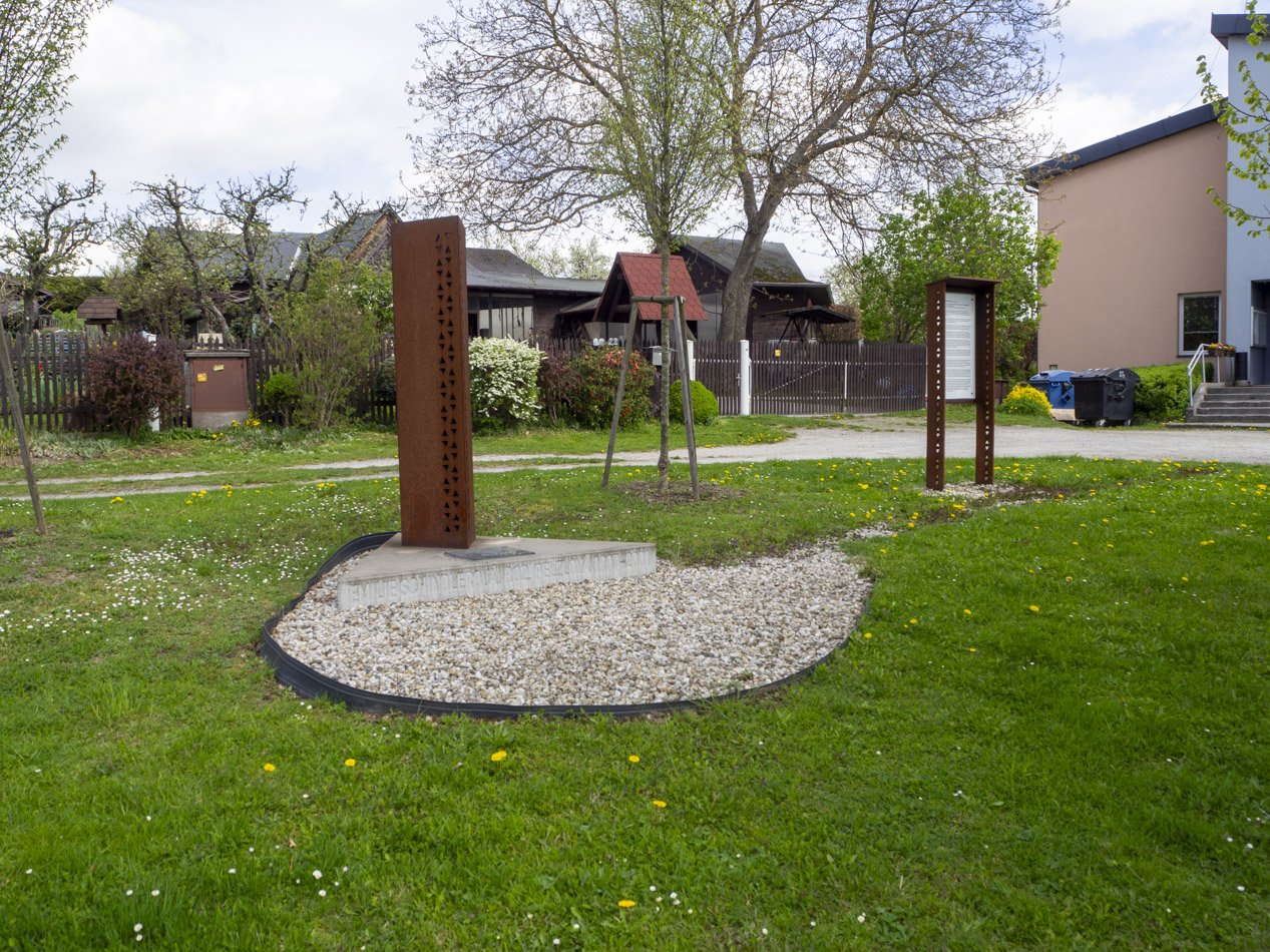 Pomník byl odhalen v roce 2017 (tedy 110 let od narození). Pomník najdeme poblíž obecního úřadu a nesmíme opomenout i vedle stojící kamenný sloup z roku 1894. Jde o pískovcový artefakt na hranolovém podstavci. Na čelní straně podstavce volutově zdobený rám s atributem biskupské mitry. Válcový sloup s reliéfem Krista a obláčkové ozdoby. Na vrcholu sloupu stávala původně socha sv. Mikuláše, po poničení nahrazena květinovou ozdobou a celý sloup přenesen na současné umístění.