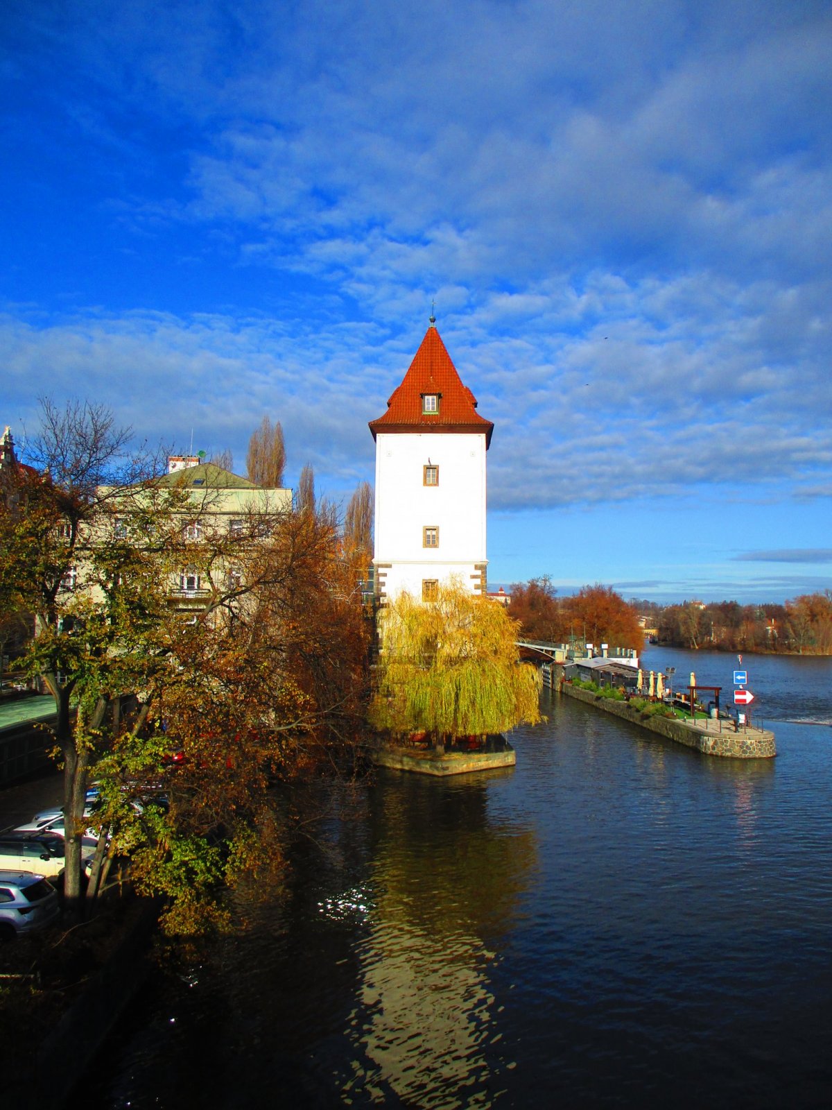 https://www.pamatkovykatalog.cz/malostranska-vodarenska-vez-14757687). V letech 1977-1989 se navíc z posledního patra věže stala pozorovatelna Státní bezpečnosti, neboť byl odsud dobrý výhled na bydliště disidenta a pozdějšího prezidenta Václava Havla. V letech 1987-1990 pak proběhla postupná oprava a modernizace celého areálu podle projektu architektky Jindřišky Petříkové, kdy byla pro kancelářské účely přestavěná věž navíc spojena proskleným visutým krčkem s administrativní budovou čp. 90, která původně vznikla v letech 1912-1913 přestavbou Karpelesova mlýna pro úřadovny Vrchní stavební správy komise pro kanalizování řek Vltavy a Labe v Čechách a byty plavidelníka a jeho pomocníků, jež měli v náplni práce obsluhovat plavební komoru, a to podle plánů Ing. arch. Jiřího Justicha. Po povodni v roce 2002 musela být spodní část věže zrestaurována. Dnes je celý areál v majetku firmy PB NEMO a. s.