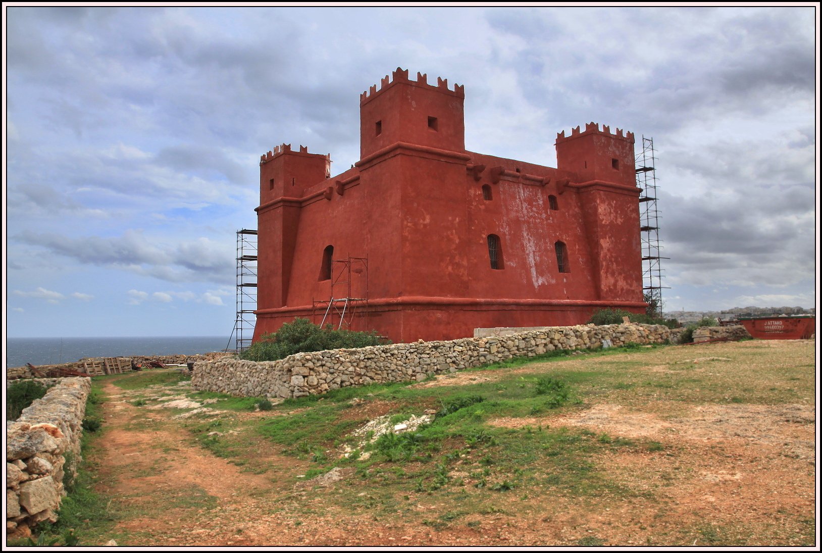 V průběhu 17. a 18. století bylo třeba chránit pobřeží Malty před vpády osmanských Turků a korzárů ze severní Afriky. Tohoto úkolu se ujali především Rytíři řádu svatého Jana a vybudovali celou řadu opevnění a strážních věží, jak je vidět na přiložené mapce. Jedna z nejvýznamnějších a také nejhezčích je Červená věž nebo také st. Agatha Tower. Nachází se na severozápadním pobřeží Malty kousek od silnice mířící k trajektu na ostrov Gozo. Je v ní umístěné malé muzeum a díky tomu je na rozdíl od jiných věží přístupná návštěvníkům. Lze vystoupat až na horní plošinu, kde jsou umístěná děla namířená na blízké zátoky. Tady si teprve uvědomíte strategickou polohu této věže. Věž byla postavená v místech původně téměř neobydlených a vystavených častým nájezdům nepřátel, kteří loupili dobytek i úrodu a brali domorodce do otroctví. Spolu s již vybudovanou věží a pevností Panny Marie na ostrově Comino tak dokončila ochranu i průlivu. Do věže byl jediný vstup po padacím mostě bránou do hlavního sálu, kde sídlila posádka. Padesát vojáků tu mohlo v izolaci vydržet až 40 dní, a to i díky vnitřní studni. Některé pozůstatky původních zdí je možno vidět prosklenou podlahou. Na horní terasu vede spirálovité schodiště. Původně tu bylo umístěno až 5 děl. Světelný maják sloužil jako signalizační řetězec pro varování ostatních věží.