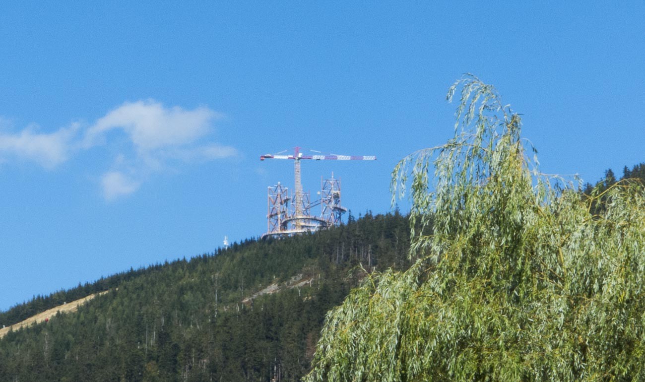 Poučený čtenář jistě ví že nad Dolní Moravou roste ještě další obluda, tzv. Stezka v oblacích. Atrakce v ceně 140 mil. Kč to bude určitě velkolepá. Nechci šťourat, ale zelení se asi nechali tučně podplatit. Vznikající dílo nápadně připomíná Stezku v korunách stromů, jakou mají dvakrát na Šumavě (jedna v Německé Železné Rudě, druhá u Lipna). Ovšem nahoře u stanice lanovky moc stromy nerostou, takže celé monstrum zatím vévodí širokému okolí. Což o to, asi se půjdu na hotové dílo podívat, nicméně rozpaky zatím přetrvávají.