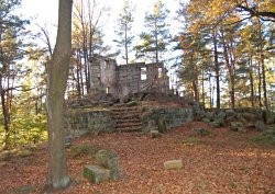 V osmdesátých letech minulého století již z kdysi monumentální romantické stavby zůstaly jen rujny, tu a tam sem zavítal osamocený turista,obdivující částečný výhled na Lužické Hory a za povšimnutí stály jen staré tajemné reliefy vytesané do pískovcových bloků a sokl po bývalém kříži, které snad pamatují dobu založení zdejší poustevny, pozdější kaple.