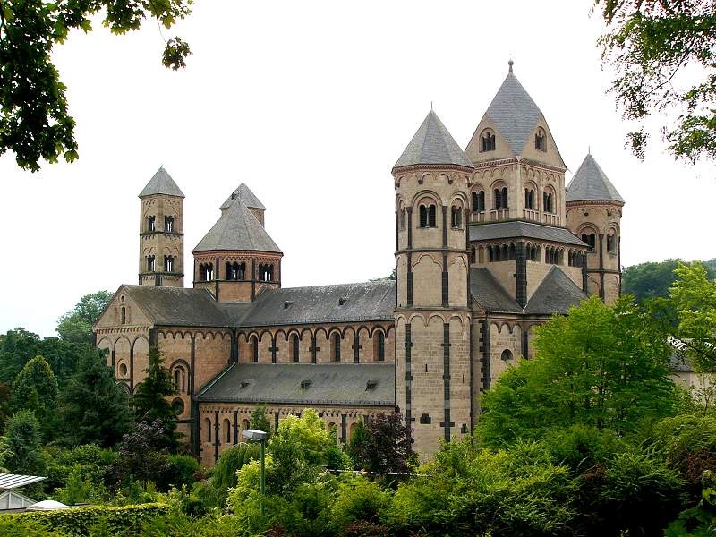Na levé straně Rýna, asi 10 kilometrů od jeho toku mezi Koblenzem a Bonnem, stojí u jezera Laach klášterní komplex, jemuž tvoří dominantu románský kostel. Opatský kostel kláštera Maria Laach je jednou z nejdochovalejších a nejkrásnějších románských staveb Německa.