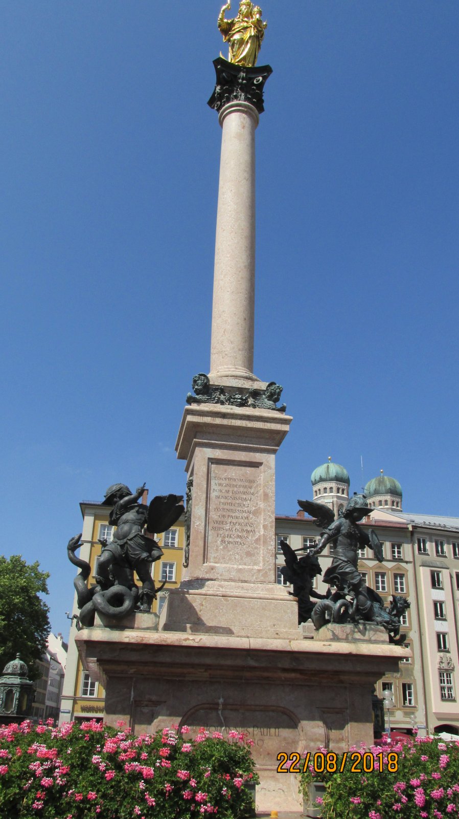 Sloup v Mnichově je nejstarší po sloupu v Římě. Další sloupy v Evropě se začaly stavět až později. V Evropě probíhala třicetiletá válka a Maxmilián I. Bavorský dal slib, že pokud bude Mnichov ušetřen, dá Bohu poděkování. Stal se zázrak a město bylo ušetřeno. Sloup zdobí štíty na kterém je lev, který znázorňuuje válku a bazilišci zase mor. Na vrchole je socha panny Marie, plující na měsíci, patronky Bavorska.