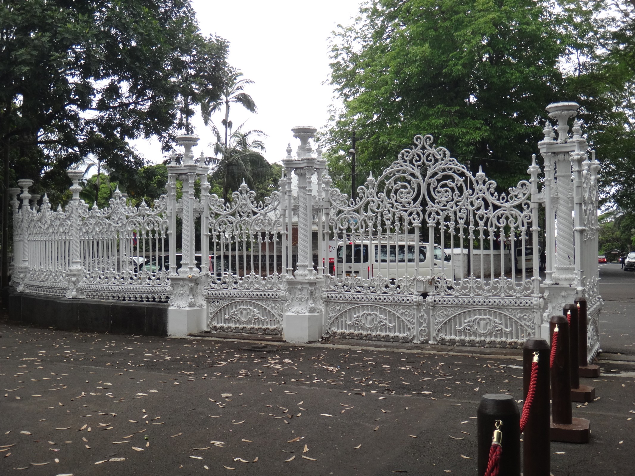 Po návštěvě tamilského chrámu, cukrovaru a kostela v Pamplemousses se konečně dostávám do SSR botanické zahrady. Vlastně až nyní doma, jsem zjistila, co SSR znamená. Tato zkratka je uváděna na mnoha místech a jsou to začáteční písmena - Sir Seewoosagur Ramgoolam. SSR se narodil 18.9.1900 mauricijsko-indickým rodičům. Byl politik a státník a zasadil se ve velké míře o nezávislost Mauricia, která byla vyhlášena v r. 1968. Funkci premiéra vykonával až do r. 1982, jeho dům v Plaine Verte na okraji Port Louis slouží jako Památník střediska pro kulturu. V botanické zahradě je jeho hrobka. Lidem je nazýván jako otec národa, zemřel 15.12.1985. To jsem opět trochu odbočila do historie Mauricia. Vcházím nádherně tepanou kovovou branou, která je opravdovým uměleckým dílem a kupuji si lístek za 200 rupií (120 Kč). Průvodce zahradou nechci, budu si vše prohlížet sama, ale občas jsem narazila na skupinky s výkladem a sem tam nějaké informace vyslechla.