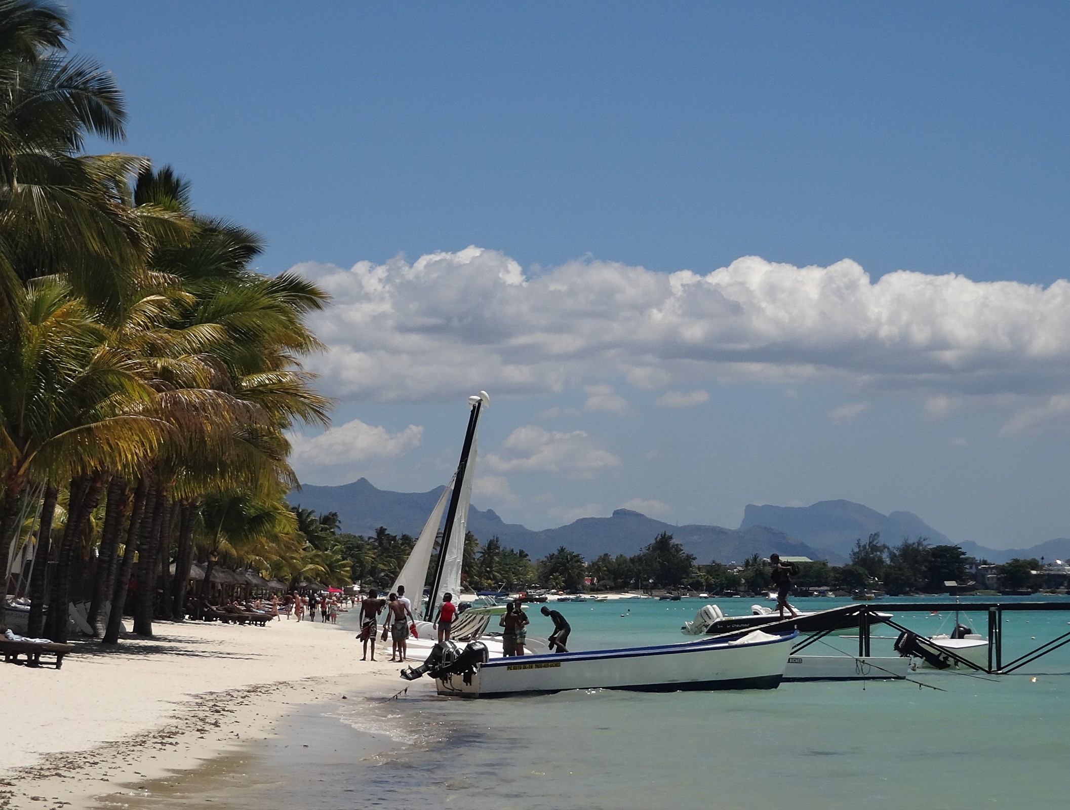 Na Mauriciu chceme poznat, která pláž je nejhezčí. Po snídani sedáme v 9 hod. na autobus a dnes jedeme do Trou aux Biches. Autobus stojí 24 rupií (asi 15 Kč). Městečko se nachází na severovýchodním pobřeží v okrese Pamplemousses. Autobus zastavuje nedaleko veřejné pláže a vida je zde nejen zdravotní středisko, ale i pošta. Jdeme koupit pár pohlednic a známky, pohlednice stojí 10 rupií a známka do Evropy 14 rupií. Jsme nadšené z veřejné dvoukilometrové pláže se zlatavým pískem a třpytivým tyrkysovým mořem. Pláž je dosti široká, ale není mnoho stínu. Na pláži si můžete lebedit jen tak na písku, nebo si koupit lehátko se slunečníkem za 200 rupií (120 Kč), snad se dá usmlouvat i levněji. Pláž v r. 2011 získala ocenění jedné z nejlepších světových pláží Beach Destination na World Travel Award.