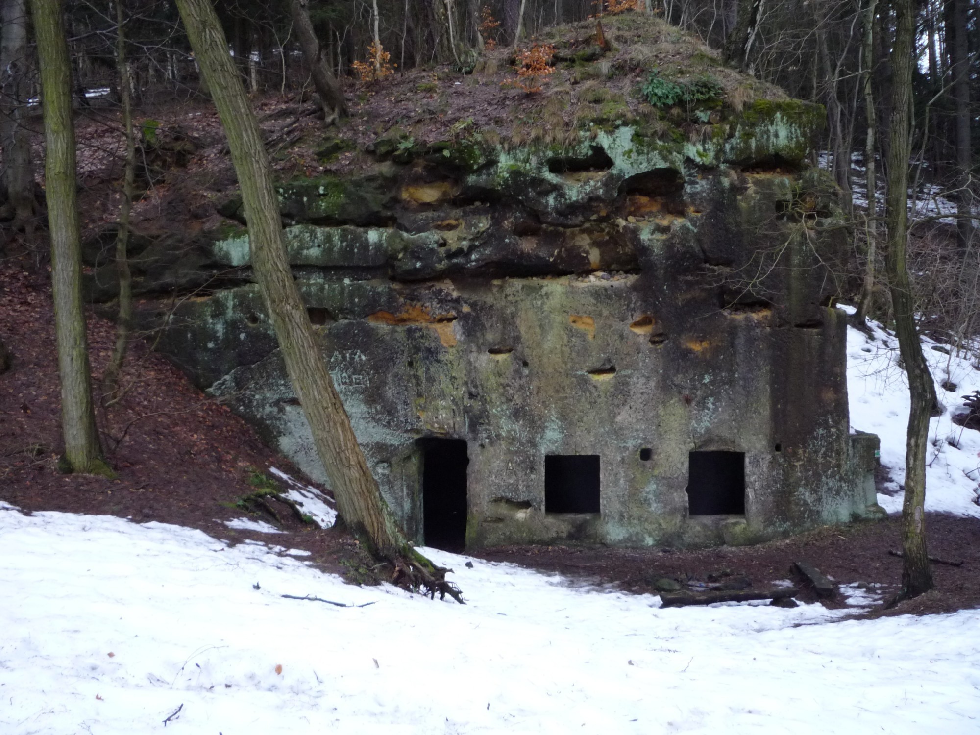 Obydlí z počátku 19. století o dvou místnostech vytesané ve skále, na SV úbočí Mazovy Horky nad Jiříčkovem (blízko Světlé pod Ještědem).