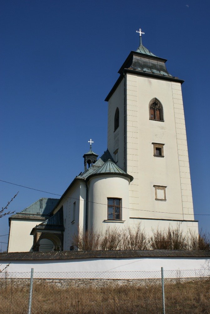 Kostel byl původně hřbitovní a - i když byl tento hřbitov zrušený již roku 1837 – stále jej obklopuje ohradní zeď s kamennou bránou. Její součástí je nápisová deska s „pamětním zápisem“ o zboření starého a postavení nového kostela.