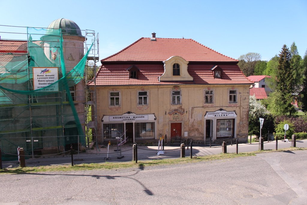 Mezi nejstarší stavební památky Mikulášovic patří i dva domy na prostranství pod kostelem. Primát drží tak zvaný Císařský dům. Byl postaven v polovině 18. století v barokním slohu. Dům má obdélníkový půdorys s výrazným průčelím Nad vchodem do domu je reliéf sv. Rodiny. Půvabnost mu dodává mansardová střecha a původní fasáda. Název domu je z doby, kdy císař Josef II. byl v této oblasti na inspekční cestě a v domě z 20. na 21. května 1779 přenocoval. Sousední dům, lékárna U Lva, je o něco mladší. Byl postaven v klasicistním slohu a v roce 1842 vyhořel. Po této události dostal novorenesanční kabát. Jeho majitel byl i pozorovatelem noční oblohy a nechal v roce 1913 přistavit hvězdárnu v secesním slohu. Hvězdárna sloužila až do roku 1939, kdy její stavitel zemřel. K obratu došlo až v roce 2014, kdy byla hvězdárna obnovena. V současné době je na domě lešení. Po opravě bude určitě patřit mezi zajímavé objekty města.