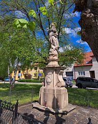 Barokní socha Neposkvrněného početí Panny Marie zapsaná v seznamu Státní památkové péče je zhotovena z hořického pískovce v období kolem roku 1740. Stojí v parku u hlavní ulice Zámecká v centru obce nedaleko kostela Všech svatých. Figura je umístěná na užším tvarovaném soklu, který spočívá na vysokém, mohutném zdobeném a tvarovaném soklu, pod nímž je ještě jeden stupeň. Na čelní straně spodního soklu je vyobrazením Prvotního hříchu. Kolem roku 2000 byly z podstavce zcizeny sošky andělů.