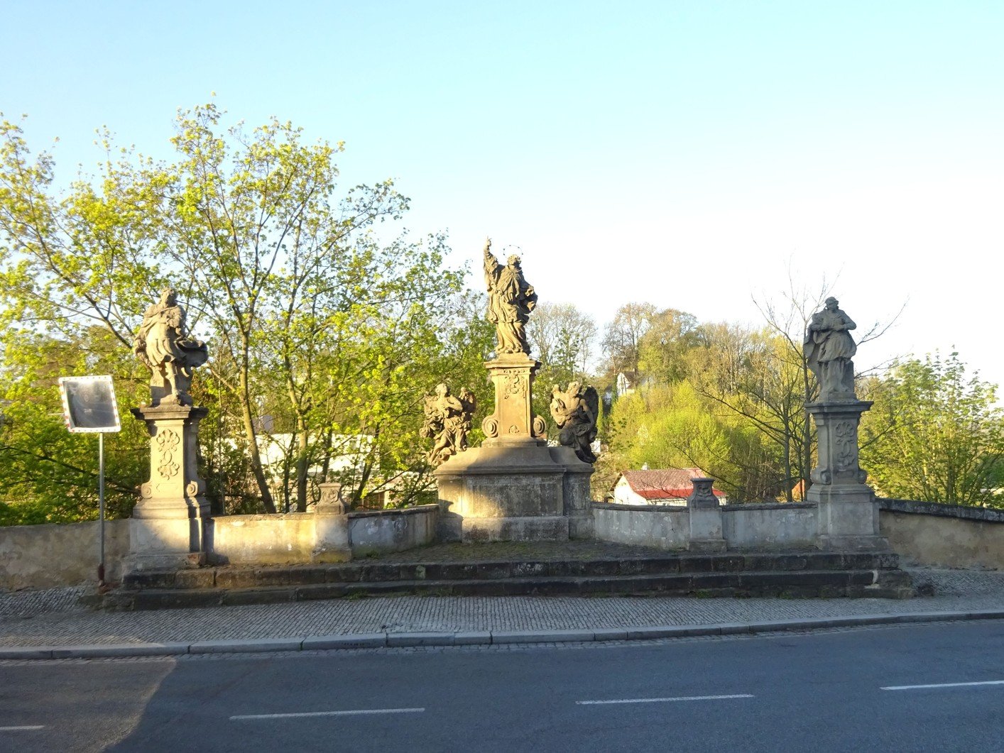 Kaplička nebo kostel se nedá na mostě postavit a tak se zde začaly stavět sochy. Jedním z prvních příkladů úcty k Janu Nepomuckému v našich zemích je socha na Karlově mostě. Socha, kterou jsem objevil, ve městě Mnichovo Hradiště, stojí na silnici před zámeckým areálem. Jedná se vlastně o velké sousoší a hodnotný doplněk na jih od zámku. Je patrně datována do počátku 18. století, ale přesné datum není známo (alespoň ne mě).