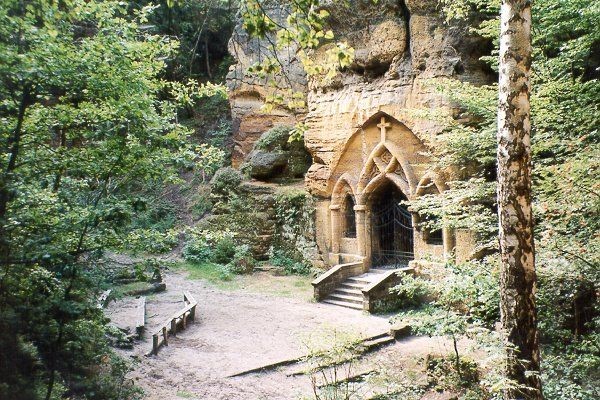 Rokle s pískovcovými skalami a ukázkami pseudokrasových jevů. V rokli na jejímž počátku u Svojkova se nachází velký dřevěný kříž se také nachází skalní kaple uměle vytesaná v pseudogotickém stylu sloupským sochařem Antonínem Wágnerem v roce 1836. Roku 1903 byla upravena do dnešní podoby. Již před jejím vznikem však panovala tradice o pobytu poustevníků ve zdejší rokli. Dnes je v kapli umístěna socha Panny Marie a v postraní kapli stylizovaný relikviář. Lokalitou prochází zelená a červená TZN. Po červené dále směrem na Sloup se nachází několik zajímavých skalních útvarů a romantických zákoutí. Přístup je nejsnadnější po červené od Svojkova, neboť od Sloupu jsou překonávány dva strmé svahy, které je lépe jíti opačným směrem.