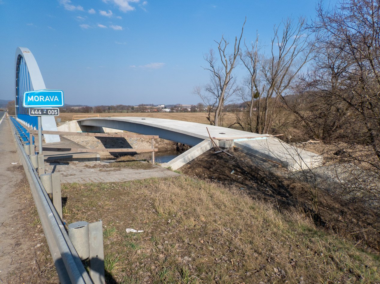 Morava 276,8 km, silniční most a lávka pro cyklisty