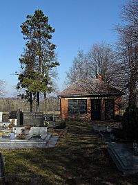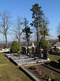 Na druhé straně silnice se rozkládá nevelký obdélný areál pěkného místního hřbitůvku. Mrlínští si tento vlastní žalov zbudovali v roce 1938, do té doby pohřbívali své zesnulé ve vzdáleném Loukově. Kámen na podezdívku místní navozili z okolí Tesáku. Jako místo k poslednímu odpočinku svých blízkých si vybrali návrší, vzdálené od posledních domů obce asi 250 m.