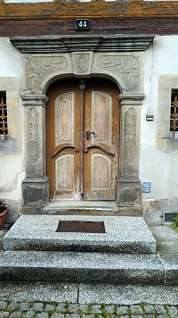 Před muzeem stojí nádherný vstupní portál z domu postaveného v roce 1727.