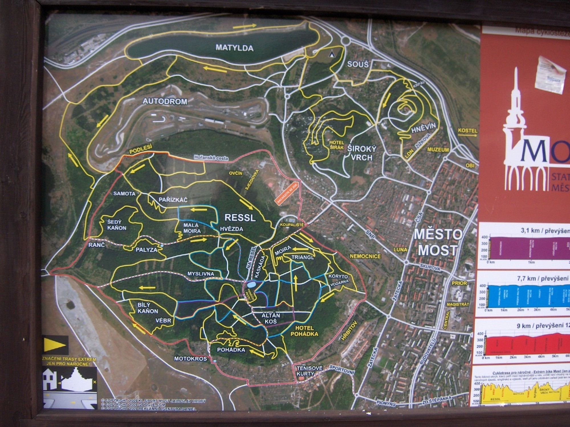 Extrémně náročná trať pro horská kola vede přes tři mostecké vrchy - Ressl, Široký vrch a Hněvín. Je značená žlutými šipkami. Strmé výšlapy a krkolomné sjezdy ji řadí mezi nejnáročnější v ČR. Okruh je dlouhý 45 km a začíná na úpatí Resslu od hotelu Pohádka.
