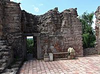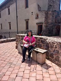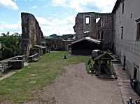 Dnes z něj návštěvníci z přístupové cesty spatří mohutnou hradbu se zříceninou druhé věže, zajímavý klenutý most s barokními sochami sv.Josefa a Panny Marie, nádvoří lemované hradbami a vysokými ruinami starého paláce a vyhlídkovou plošinu. A samozřejmě také zastřešenou hmotu západního paláce, v jehož interiérech se odehrává zpoplatněná prohlídka. Tu jsme absolvovali s velmi sympatickým průvodcem - černovlasým mladým mužem.