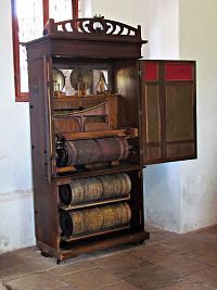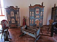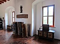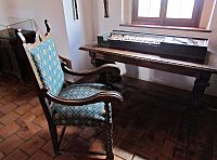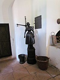 Součástí tohoto okruhu bylo i obkouknutí černé kuchyně s renesančním krbem a sto let starým (ale dosud funkčním) orchestrionem. Ukázku hudby z prastarého „juke boxu“ jsme si mohli „vychutnat“ na vlastní uši. Překvapilo mne nejen to, že funguje na nynější české pětikoruny, ale hlavně jeho hlasitá produkce. Holt naši předci ještě nebyli omezeni dnešními (převážně) nesmyslnými nařízeními a o nějaké EU se jim ani nesnilo!