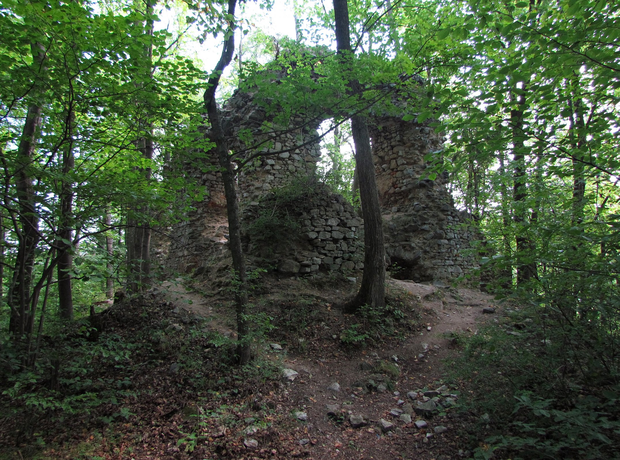 Stačilo projít osadou a dlouhou alejí, pak už v lese, který je součástí NPR, překonat menší hrb a z něj seběhnout do sedélka s rozcestníkem ku hradu. Stačil k tomu kilometr nenáročné chůze, při níž bylo cestou alejí třeba se vyhýbat nevoňavému roztroušenému produktu, spisovně nazývaném chlévskou mrvou, v lese pak už žádné nebezpečí od dobytčích extrementů nehrozilo.