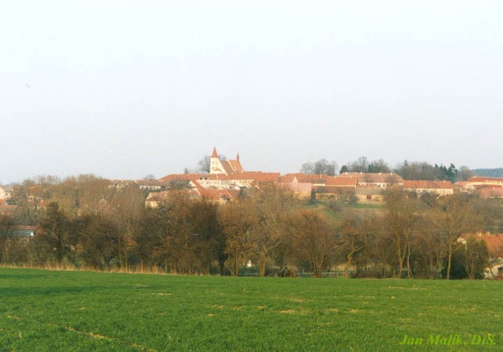 V první polovině 12. století tu bylo postaveno opevněné sídlo a románský kostel. V blízkosti vznikla osada, která se již ve 13. století stala městečkem. V období třicetileté války bylo městečko téměř zbořeno a odešla část obyvatel. K rozvoji městečka přispělo postavení velkého barokního zámku na východní straně náměstí. Další negativní vlivy městečko nepostihly, a tak si dochovalo starobylý venkovský vzhled se svažitým náměstím v historickém centru. Dominantou města je kromě zámku také románský Kostel svatého Petra a Pavla postavený v roce 1150. Kostel byl přestavěn goticky a později prošel barokní úpravou. V sousedství kostela je gotická věžovitá zvonice, ke která byla přidělána v roce 1818 nástavba. V 16. století byla ke zvonice přistavěna renesanční budova radnice, která byla v 18. století barokně přestavěna a přibyla věžička s hodinami. Barokní fara byla postavena v roce 1740.