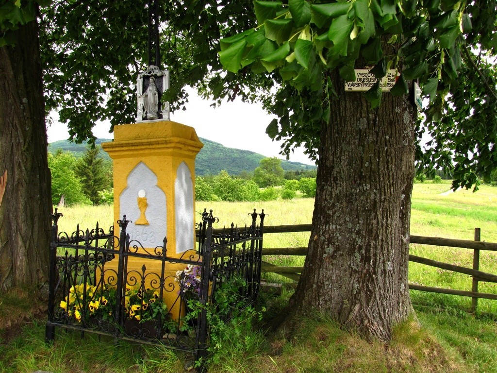 Mezi stromy stojí udržovaný křížek  autor: zwal