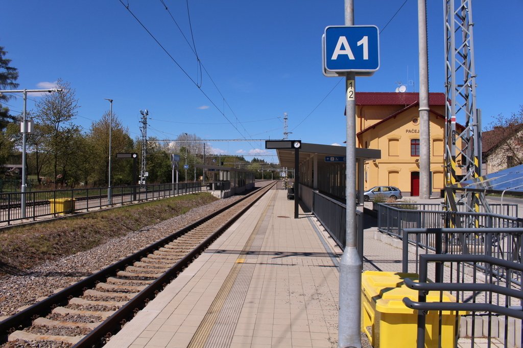 Nadpis naznačuje, že nádraží má něco společného s dětmi z Pačejova. Ale je třeba začít v době, kdy se začala stavět železnice. V roce 1866 získala koncesi společnost Dráha císaře Františka Josefa ( KFJB). Společnost provozovala železniční dopravu mezi Prahou a Vídní a mezi Chebem a Českými Budějovicemi. Mezi koncesionáře patřilo několik významných šlechticů a tak se zrodila i přezdívka „knížecí dráha“. Stavba železniční tratě byla zahájena 1. dubna 1867 a zahajovací výkop provedl kníže Jan Adolf Schwarzenberg. Už v září tohoto roku byly položeny koleje a 27.7. 1868 přijela do stanice Olšany zkušební lokomotiva. V srpnu přijel slavnostní vlak a pravidelný provoz byl zahájen 1. září 1868. Kromě železnice byly postaveny budova nádraží, poštovní a telegrafní stanice, sklady a dům pro zaměstnance. Mimo to byly postaveny dva hotely. Po vzniku republiky přešly železnice pod správu státu. Ke konci druhé světové války v dubnu 1945 bylo nádraží bombardováno. Následná léta lze přeskočit a to až do roku 2020. Tehdy bylo celé nádraží přebudováno. Byly postaveny dvě nástupiště spojené podchodem a opravena nádražní budova. A tady do příběhu vstupují děti místní mateřské a základní školy. Podle jejich návrhu byl vymalován podchod a musí se uznat, že se to povedlo. Že tomu tak je, určitě potvrdí fotografie. Zbývá doplnit, že od nádraží vedou tři turistické cesty. Budova nádraží je pro veřejnost uzavřena, jsou zde byty. Ale při severní straně nádraží je malá prodejna, která je otevřena 7 dní v týdnu. Autobusy mají stanoviště před nádražím. Vlaky tady jezdí v obou směrech ve dvouhodinových intervalech.