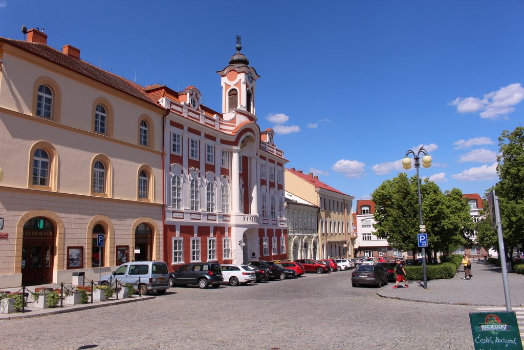 Město Čáslav bylo založeno králem Přemyslem Otakarem II. v roce 1260. V této době tudy procházela důležitá zemská stezka z Čech na Moravu. Někdy se uvádí, že v těchto místech stával dříve krajský hrad, který byl při založení města uváděný jako pustý. Centrem města bylo náměstí, které i v současnosti překvapí svojí rozlohou. Délka něco málo přes 200 metrů a šířka kolem 100 metrů. Když budeme procházet náměstím ze severní strany, projdeme na parkoviště kolem kterého jsou vysázeny stromy. Střední část je vydlážděna a vyniká na ní mariánský sloup a klasicistní kašna. V jižní části náměstí je parčík se sochou Jana Žižky a sochou Tyché a bohatá květinová výsadba. Mimo parčík stojí meteorologický sloup. Mezi domy a náměstím prochází ulice s jednosměrným provozem. Z každé strany náměstí vycházejí dvě ulice, některé se zákazem vjezdu. Domy na náměstí jsou patrové a k těm nejcennějším jistě patří radnice. Ta současná byla postavena na místě staré gotické radnice v roce 1766 v barokním slohu. Stavělo se podle plánu J. J. Wircha a původní stavba měla podloubí. To bylo při úpravách v roce 1804 zazděno. Střed radniční budovy je zdůrazněn portálem s balkonem. Vrchol budovy zdobí hranolová věž. Mezi domy na náměstí je několik s gotickým jádrem, empírové a postavené v pozdním baroku. U většiny se ale uvádí, že mají nově upravené fasády. V jižní části náměstí lze posedět. Najdou se tady i obchůdky a také nějaké občerstvení. Čáslav je městskou památkovou zónou a za návštěvu zcela jistě stojí.