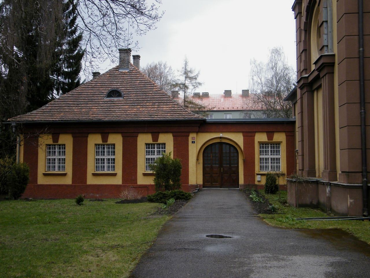 Přihodila se ale menší nehoda. Uvědomil jsem si, že mi docházejí cigarety, vyrazil jsem tedy dřív. Třeba bude u nás v tržnici fronta a mohlo by mi to ujet. Nebyla. Omylem jsem stihl dřívější autobus. Zrovna se na Zastávce střídali páni řidiči, a ten, který přebíral volant, je kamarád. Cestu jsem neproseděl, ale zcela nepředpisově prostál u předního vchodu (jen na Zastávkách jsem se musel stáhnout, aby bylo možno nastoupit) a ještě ke všemu jsem mluvil s řidičem. A on se mnou. U toho kostela jsem vystoupil o skoro půlhodinku dřív, než jsem předpokládal. Nevěděl jsem, jestli kolega zprávu vůbec přijal, ale když už jsem takhle plašil, určitě tu v danou dobu musím být. A konec konců, Kostel sv. Václava jde obejít a žádné obrázky odtud zatím nemám. Obešel jsem. První obrázek je (doufám) fara. Potom jsem se o kousek vrátil a u portálu jsem si vzpomněl na České nebe. „Nenechám, nenechám“.